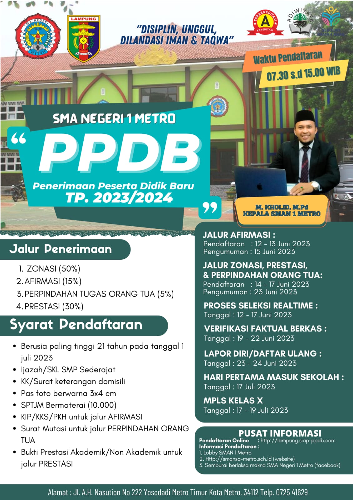 PENGUMUMAN PENERIMAAN PESERTA DIDIK BARU SMA NEGERI 1 METRO TP.2023/2024