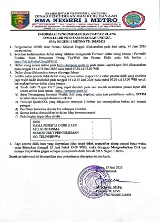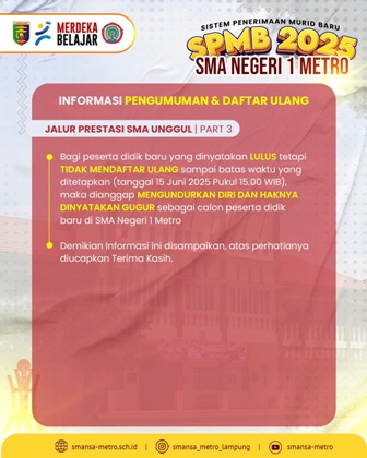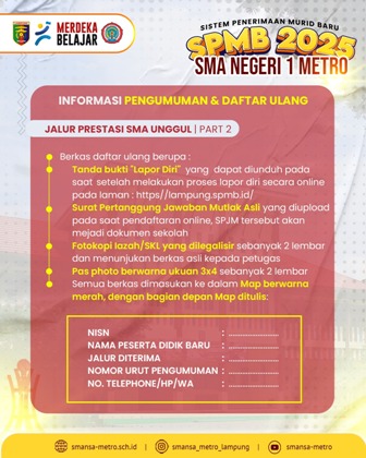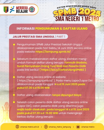 - PENGUMUMAN SISTEM PENERIMAAN MURID BARU SMA NEGERI 1 METRO TAHUN PELAJARAN 2025/2026